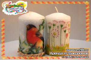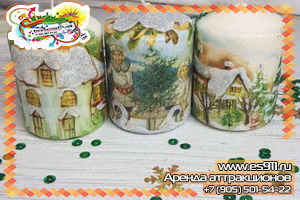 Уютными зимними вечерами так и хочется сотворить, что-нибудь волшебное и прекрасное! Мы предлагаем вам провести выездной мастер-класс по декупажу новогодних свечей. Это оригинальная техника декора, когда на любую поверхность вы накладываете понравившийся рисунок праздничной салфетки или специальной бумаги и закрепляете его клеем и лаком. Но это только в описании все просто, а на самом деле в таком творческом мастер-классе есть множество тонкостей, которыми поделятся наши мастера. И совершится чудо - теплыми огоньками зажгутся в новогодний праздник свечи!