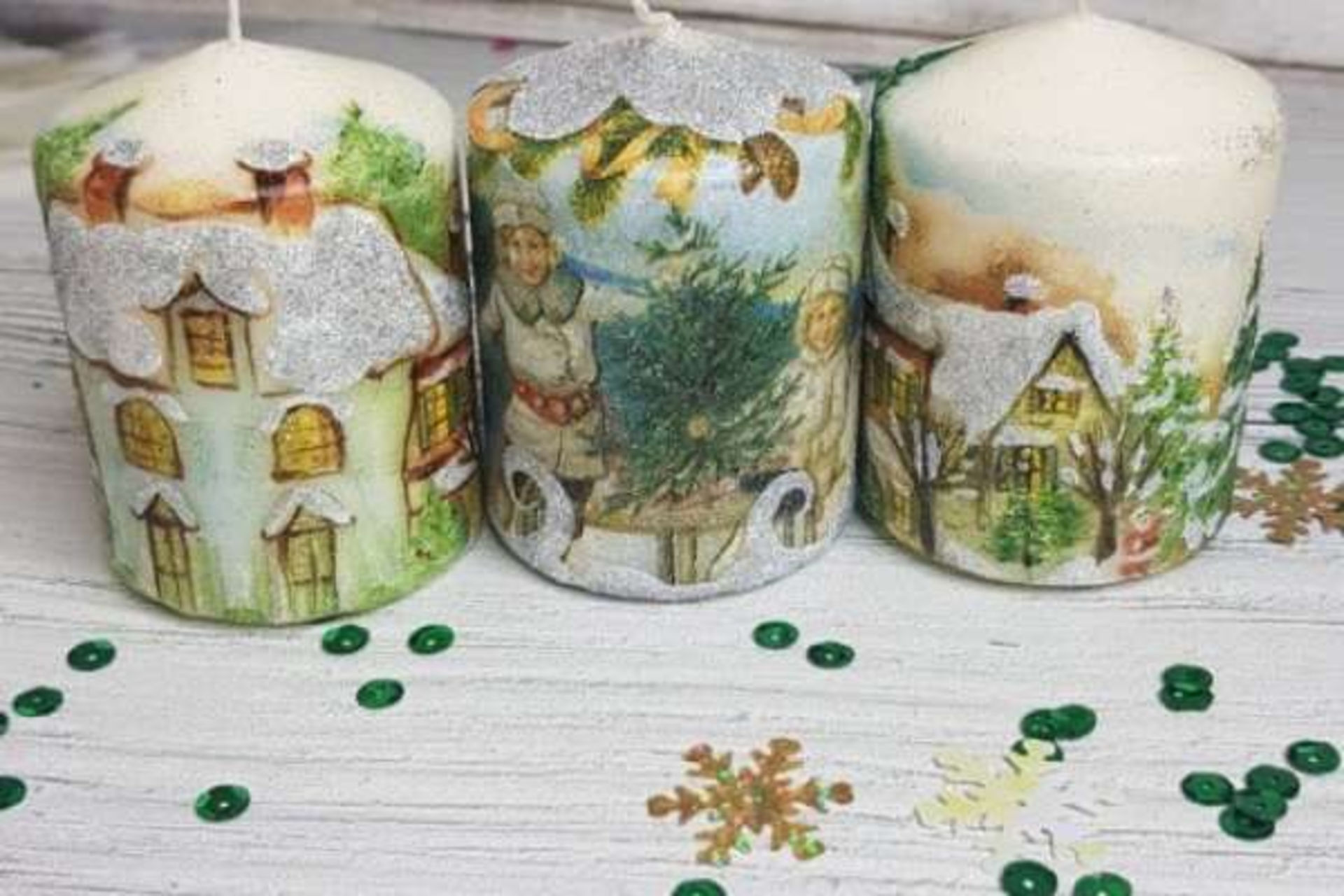 Декупаж новогодних свечей