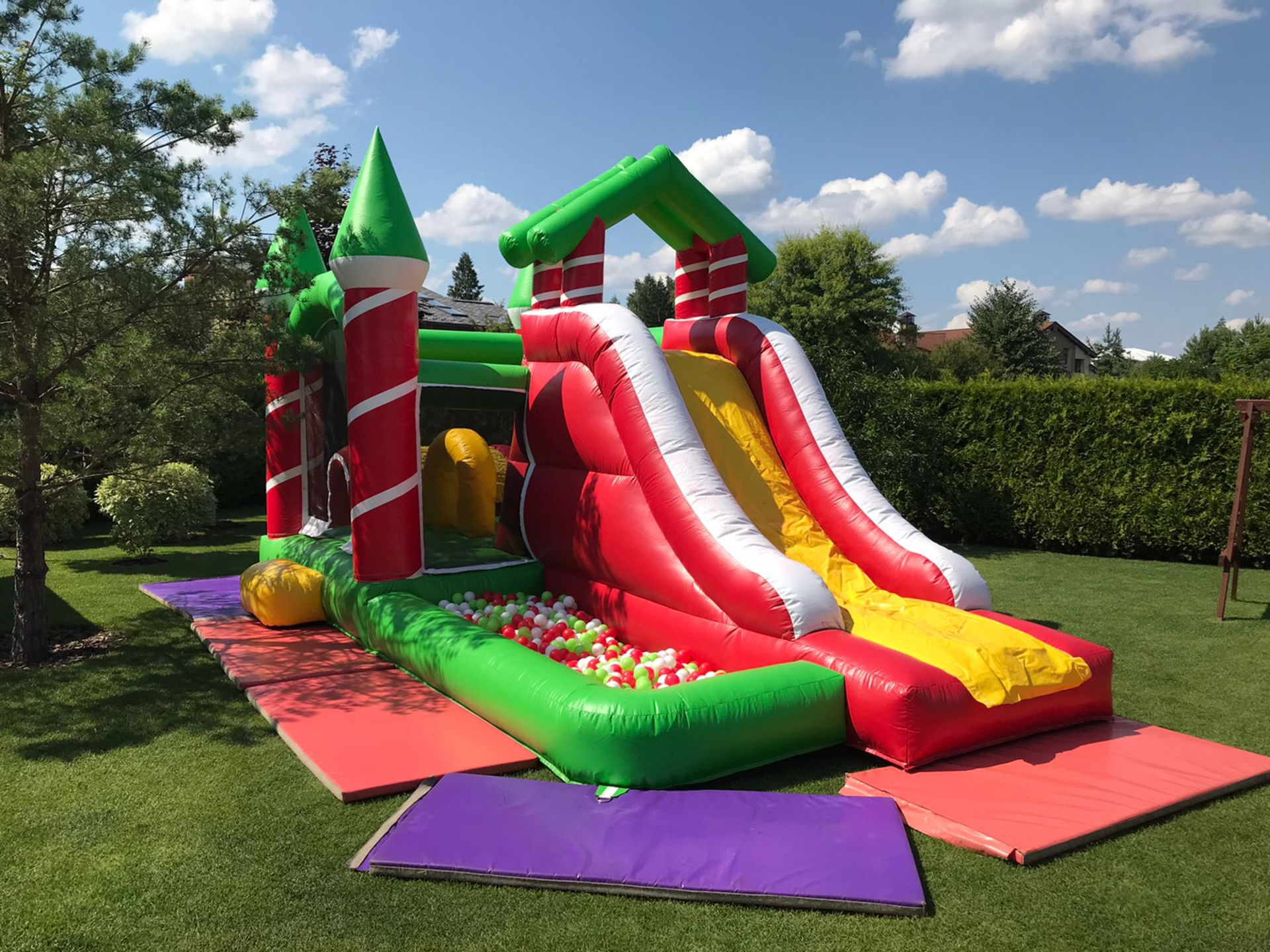 Нынешнее лето щедро на солнечные деньки и на веселые детские праздники. А где праздник - там и наши батуты! Множество ярких эмоций вызвал у малышей детский надувной батутный комплекс Happy Holiday. В нем есть и огражденный батут с сеткой, что очень важно для малышей, ведь мы заботимся о безопасности каждого ребенка. Есть и надувная горка и мягкий бассейн с разноцветными шариками. Весело проводить летние каникулы с ярким батутом Happy Holiday.